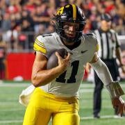 0:13Coming right at you: Iowa QB Mark Gronowski has an easy path to end zone
